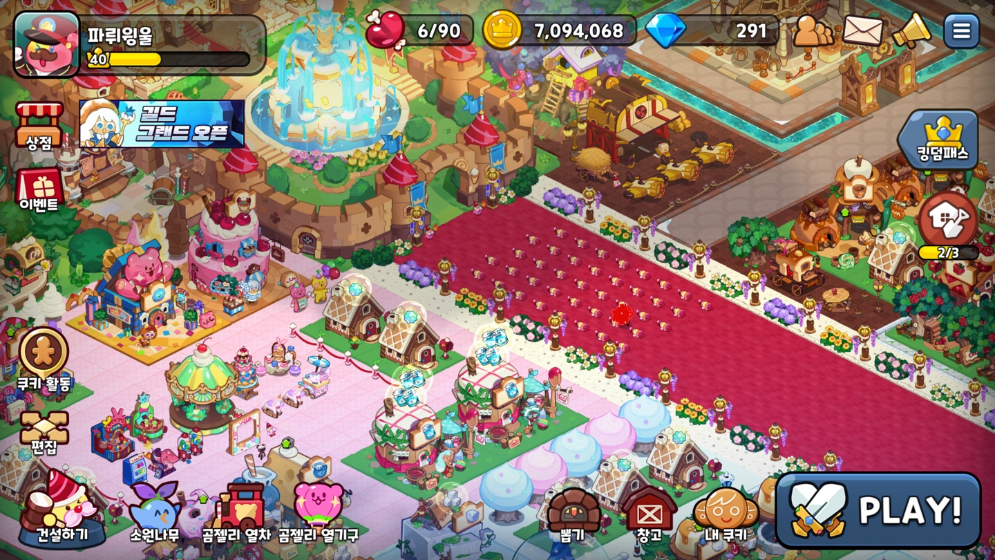 현재 왕국 40 레벨에 쿠키성 11 레벨에 도달했는데 번외로 왕국 레벨을 올리는 방법은 무조건! 퀘스트 해주셔야 됩니다.